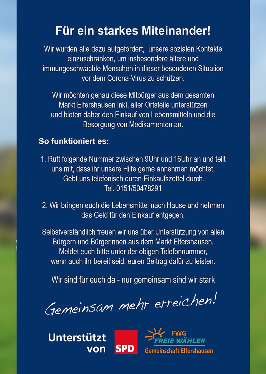 ich möchte mich auf diesem Weg noch einmal recht herzlich für Ihr Vertrauen bedanken. Ich blicke hoffnungsvoll in die Zukunft und möchte unsere Marktgemeinde voran bringen. Auch mit Corona wird es weiter gehen. Wir müssen zusammenhalten, miteinander reden, denken und handeln.